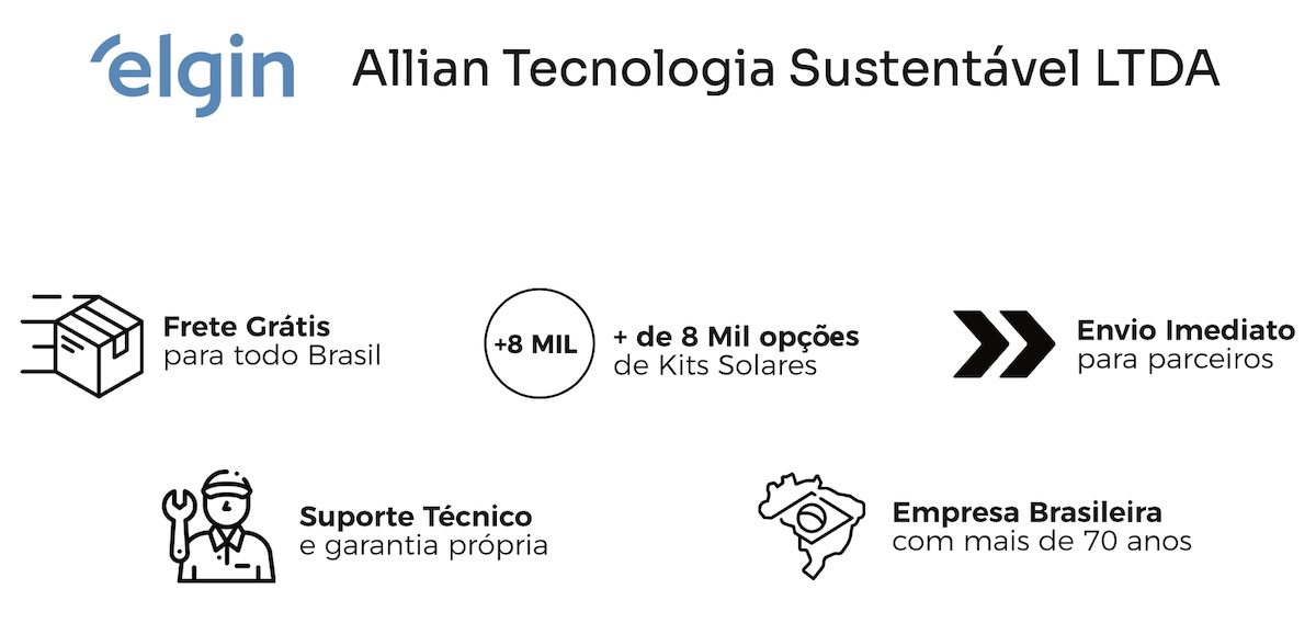 A Allian Tecnologia Sustentável é uma empresa especializada no segmento de Energia Solar Fotovoltaica que surgiu devido à necessidade do mercado em obter produtos e serviços genuinamente brasileiros, através da união com a Elgin, empresa nacional com mais de 70 anos no mercado, entregando ao consumidor segurança e durabilidade em seus produtos e serviços.